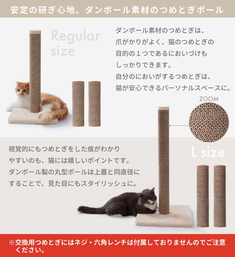 高さ80cmのLサイズは、レギュラーサイズよりももっとからだを伸ばしてつめとぎができるサイズ。