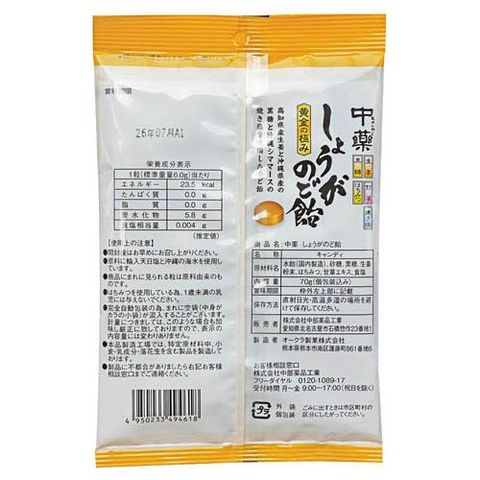 【中薬しょうがのど飴の商品詳細】