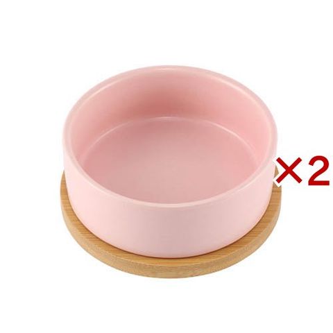 ●温もりのある色合いの陶器と竹製のトレイがセットになったペット用食器です。