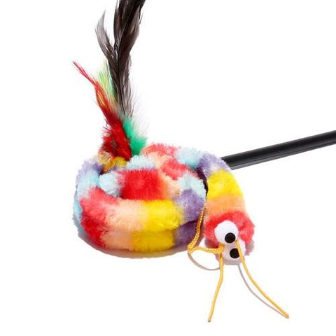 ●「ロッディーズ レインボーワーム」は、レインボーのシマシマ柄をした長~いムシが紐で繋がった猫じゃらしです。