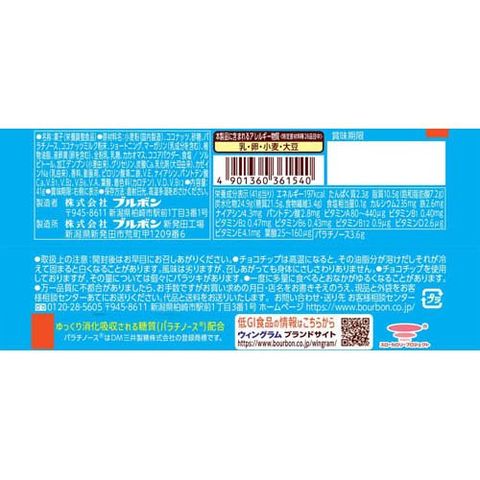 | 小麦粉(国内製造)、ココナッツ、砂糖、パラチノース、ココナッツミルク粉末、ショートニング、マーガリン(乳成分を含む)、植物油脂、液卵黄(卵を含む)、全粉乳、乳糖、カカオマス、ココアパウダー、食塩 / ソルビトール、加工デンプン(小麦由来)、グリセリン、炭酸Ca、乳化剤(大豆由来)、カゼインNa(乳由来)、香料、膨脹剤、ピロリン酸第二鉄、V.E、ナイアシン、パントテン酸Ca、V.B1、V.B2、V.B6、V.A、葉酸、着色料(カロテン)、V.D、V.B12 |