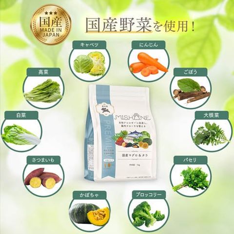 ●主原料は全て国産の食材を使用し、栄養価が高くバランスの摂れた12種類の国産野菜を配合。