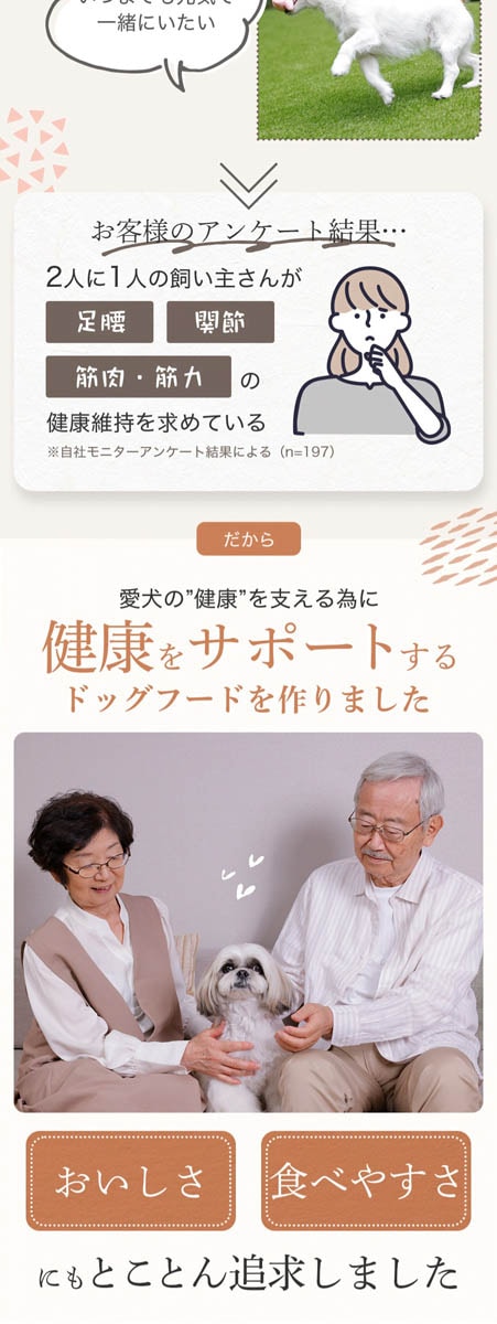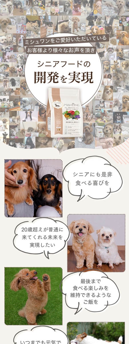 ●ずっと寄り添うフードで「ニ十歳を目指す」がコンセプトのシニア犬向けプレミアムドッグフード。