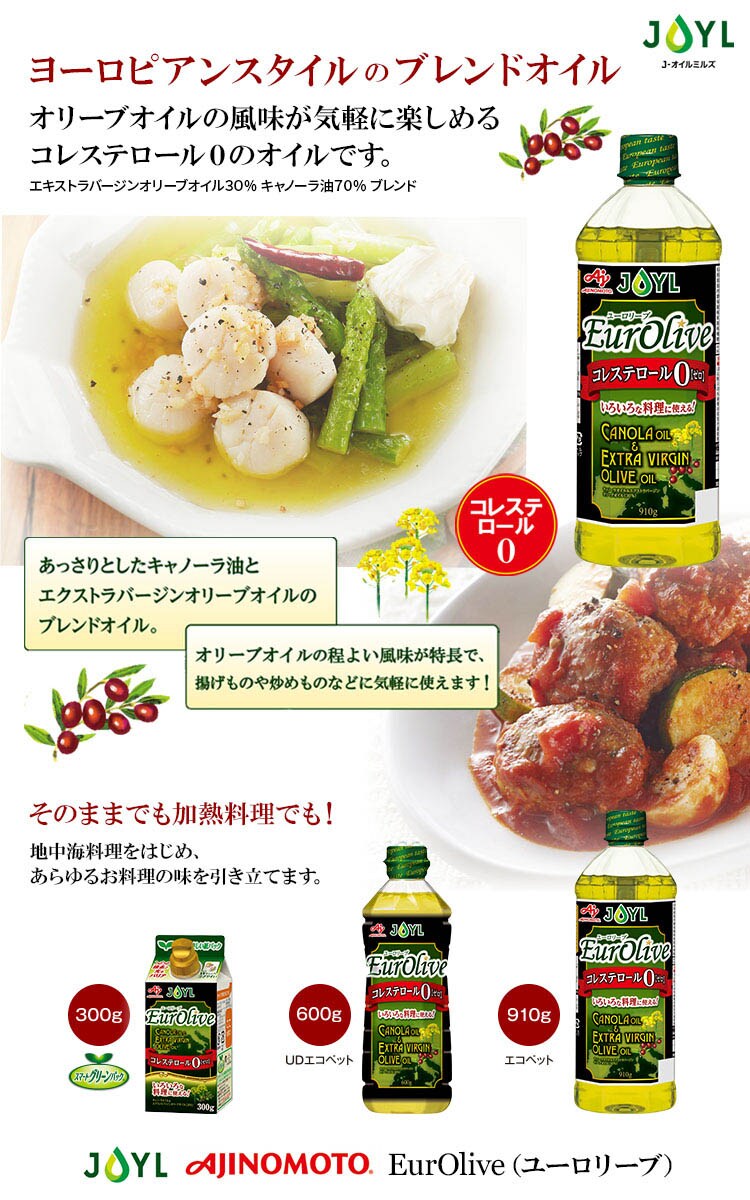 ●あっさりとしたキャノーラ油に香り豊かなエクストラバージンオリーブオイル(30%)をブレンドした「ヨーロピアンスタイルのブレンドオイル」です。