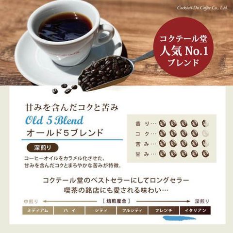 【コクテール堂 オールド5ブレンド 深煎り 豆の商品詳細】