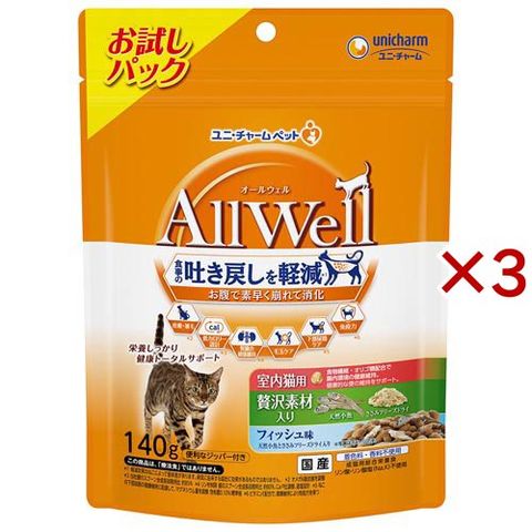 AllWell 室内猫用 贅沢素材入り フィッシュ味 天然小魚とささみフリーズドライ入り (140g×3セット)