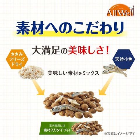 【AllWell 室内猫用 贅沢素材入り フィッシュ味 天然小魚とささみフリーズドライ入りの商品詳細】
