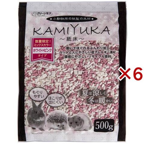 クリーンモフ 小動物用床材 KAMIYUKA 紙床 ミックス ホワイト×ピンク (500g×6セット)