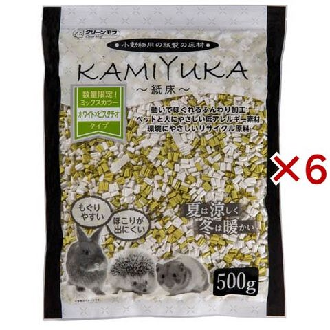 クリーンモフ 小動物用床材 KAMIYUKA 紙床 ミックス ホワイト×ピスタチオ (500g×6セット)