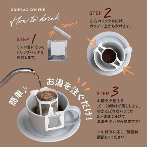 ●カップのフチにかけ、お湯をそそぐだけのドリップタイプ。