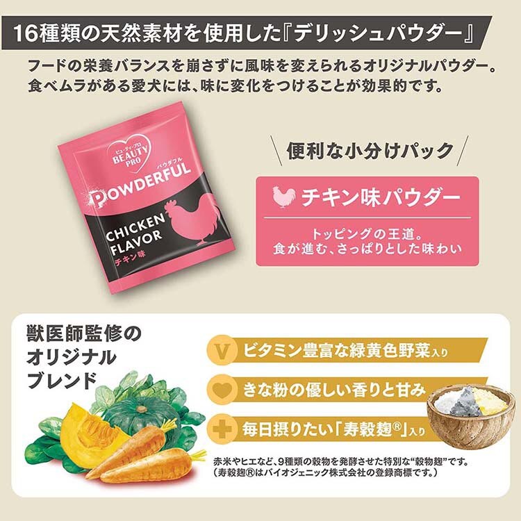 ビューティープロ ドッグ パウダフル 成犬用 チキン味パウダー付き お手頃サイズ (100g+2g×16セット)