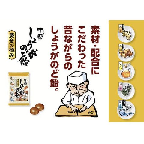 ●のどにやさしい沖縄県産の黒糖が旨味を引き立たせ、高知県産の生姜を配合し、ピリッと辛めの風味が広がります。