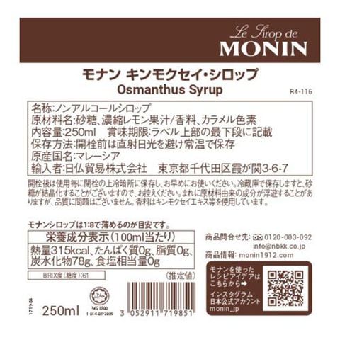 【MONIN(モナン) キンモクセイ・シロップの商品詳細】