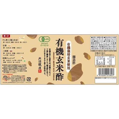 ●有機玄米から酒を造り、酢酸発酵を通じて丁寧に醸造した香りの良い玄米酢です。