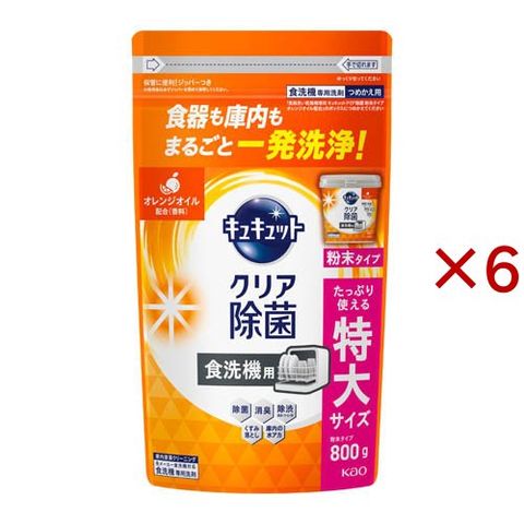 食器洗い乾燥機専用 キュキュットクリア除菌 粉末タイプ オレンジオイル配合 替え (800g×6セット)
