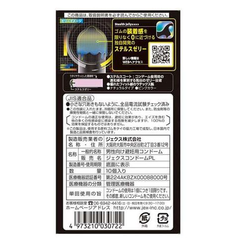●天然ラテックス製コンドームに、ゴム感が消えるステルスゼリーをジェクス史上最大量塗布することで、理想の「生感覚」を実現。