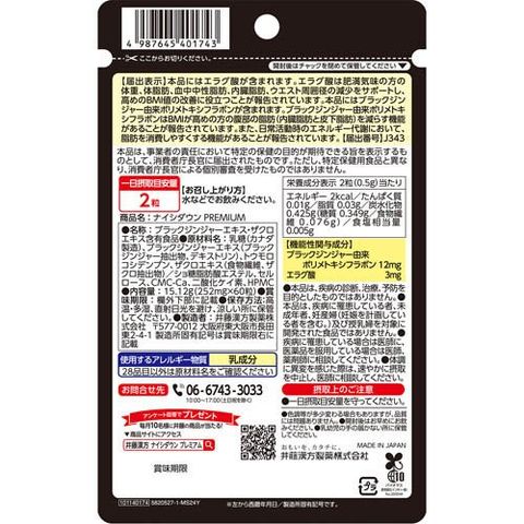 ●本品は2つの機能性関与成分ブラックジンジャー由来ポリメトキシフラボンとエラグ酸を配合したプレミアムな商品です。