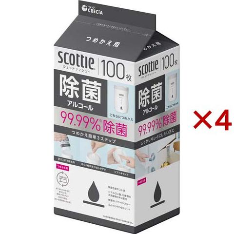 スコッティ ウェットティッシュ 除菌 アルコール つめかえ用 (100枚入×4セット)