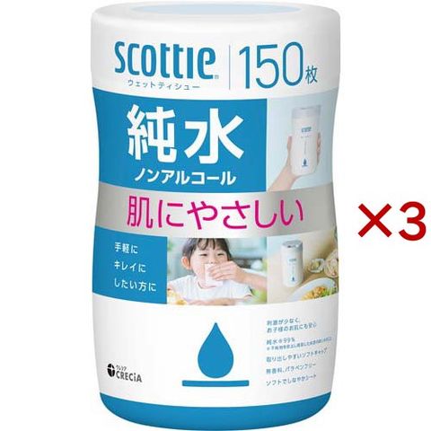 スコッティ ウェットティッシュ 純水 ノンアルコール 本体 (150枚入×3セット)