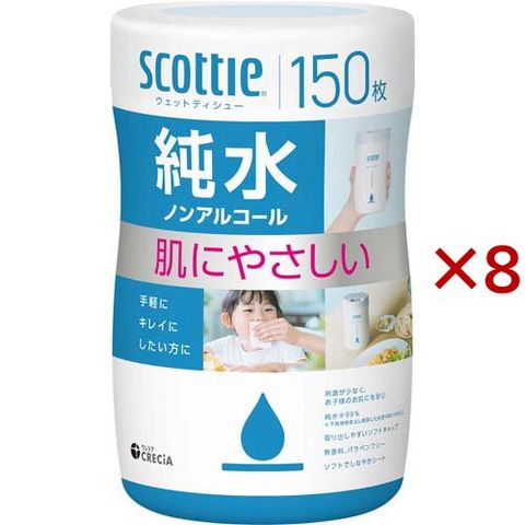 スコッティ ウェットティッシュ 純水 ノンアルコール 本体 (150枚入×8セット)