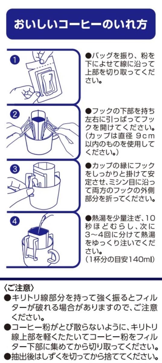 ・コーヒーの油脂分が染み出てフック部やフィルターが変色する事がありますが、品質には問題ありません。