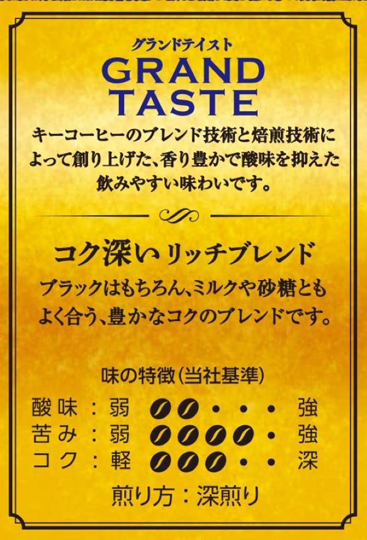 【キーコーヒー ドリップバッグ グランドテイスト コク深いリッチブレンドの商品詳細】