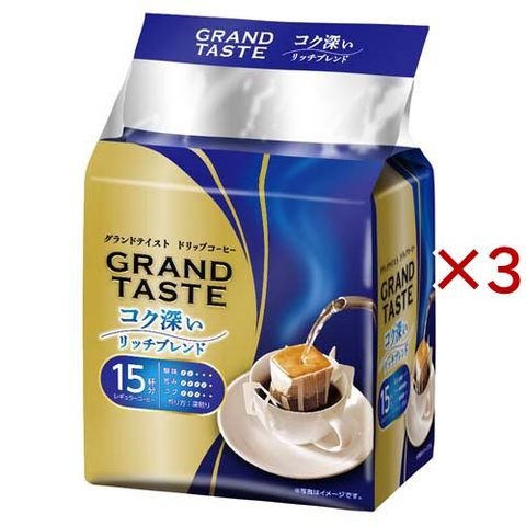 キーコーヒー ドリップバッグ グランドテイスト コク深いリッチブレンド (15袋入×3セット(1袋6g))