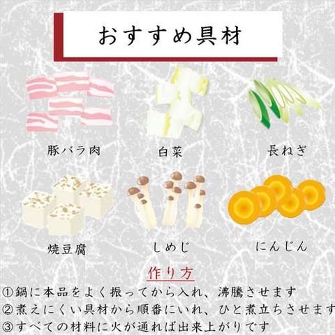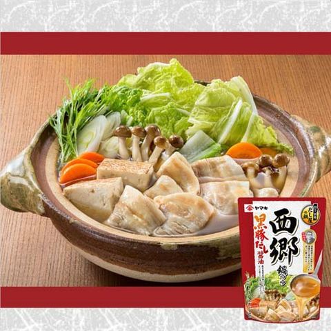 ●本品は、鹿児島県産黒豚のガラから煮出したスープに、鹿児島県製造のかつお節を加えることでだしをしっかり効かせ、九州製造醤油で仕上げた、豊かなコクとうま味を楽しんでいただける鍋つゆです。