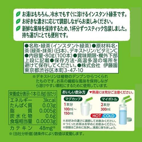 ●冷水でもお湯でもさらさらすぐ溶ける、インスタント緑茶