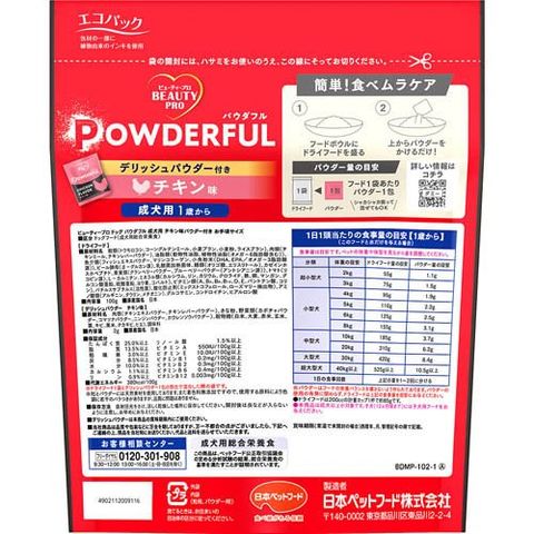 【ビューティープロ ドッグ パウダフル 成犬用 チキン味パウダー付き お手頃サイズの商品詳細】