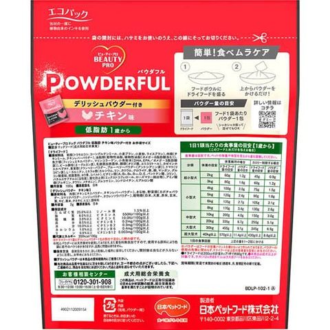 【ビューティープロ ドッグ パウダフル 低脂肪 チキン味パウダー付き お手頃サイズの商品詳細】