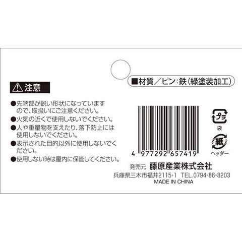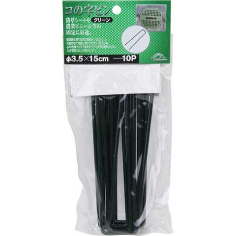 | 形状:コの字型。ピン長さ:15cm。ピン太さ:3.5mm。ピン肩幅:30mm。入数:10本。緑塗装仕様。(材質)スチール。 |