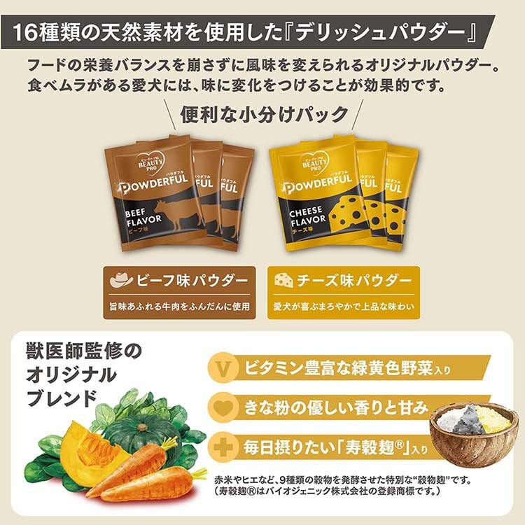 【ビューティープロ ドッグ パウダフル 10歳以上 ビーフ味・チーズ味パウダー付きの商品詳細】