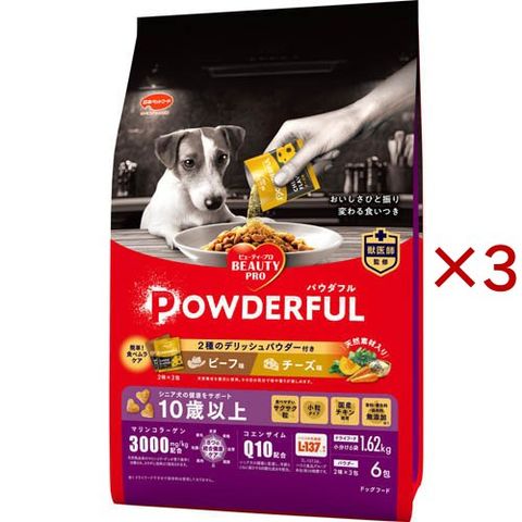 ビューティープロ ドッグ パウダフル 10歳以上 ビーフ味・チーズ味パウダー付き (6袋入×3セット(1袋270g))