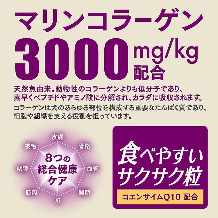 ●マリンコラーゲン3000mg/kg配合で、総合健康ケア。