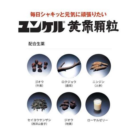 ●ゴオウ、ロクジョウなどの動物性生薬、ニンジン、セイヨウサンザシ、ジオウなどの植物性生薬に各種ビタミンを配合したのみやすい顆粒です。