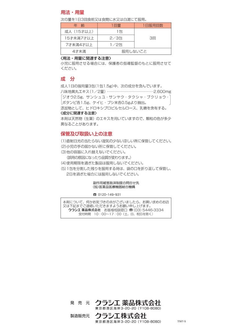 【販売名】八味地黄丸料エキス顆粒クラシエ