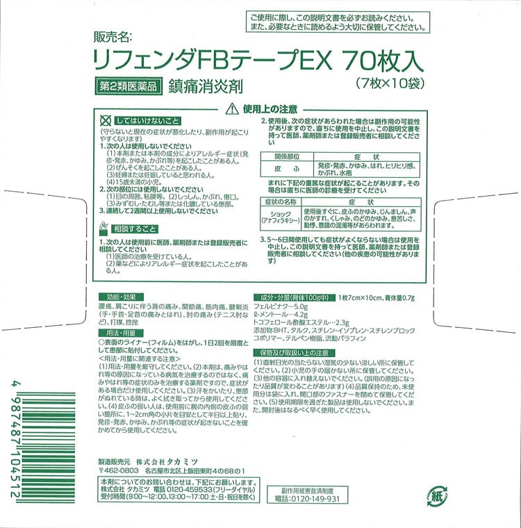 【第2類医薬品】リフェンダFBテープEX (70枚入×2セット(セルフメディケーション税制対象))