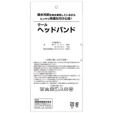 ●接触冷感生地+おでこ部分に冷却タオル生地使用で汗に反応し気化熱冷却と汗止めに最適です。