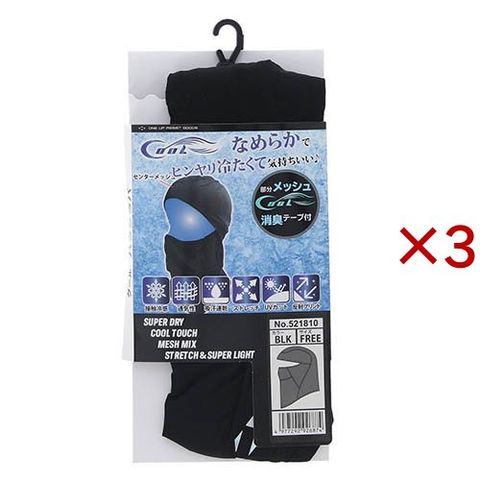 SK11 クール バラクラバ 接触冷感 通気性 吸汗速乾 UVカット 521810-BLK-F 黒 (3セット)