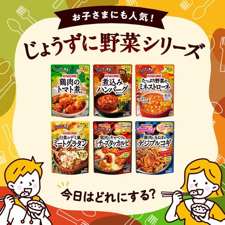 トマト(輸入)、牛乳、たまねぎ、砂糖、ウスタ―ソース、乳等を主要原料とする食品、食塩、クリーム(乳製品)、小麦粉加工食品、ビーフエキス調味料、にんにく、食用植物油脂、香辛料/増粘剤(加工デンプン)、クエン酸、(一部に小麦・乳成分・牛肉・大豆・りんごを含む)