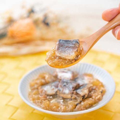 | 1缶(150g)当たり 推定値 エネルギー:172kcal、たんぱく質:14.7g、脂質:10.8g、炭水化物:3.9g、食塩相当量:2.8g |