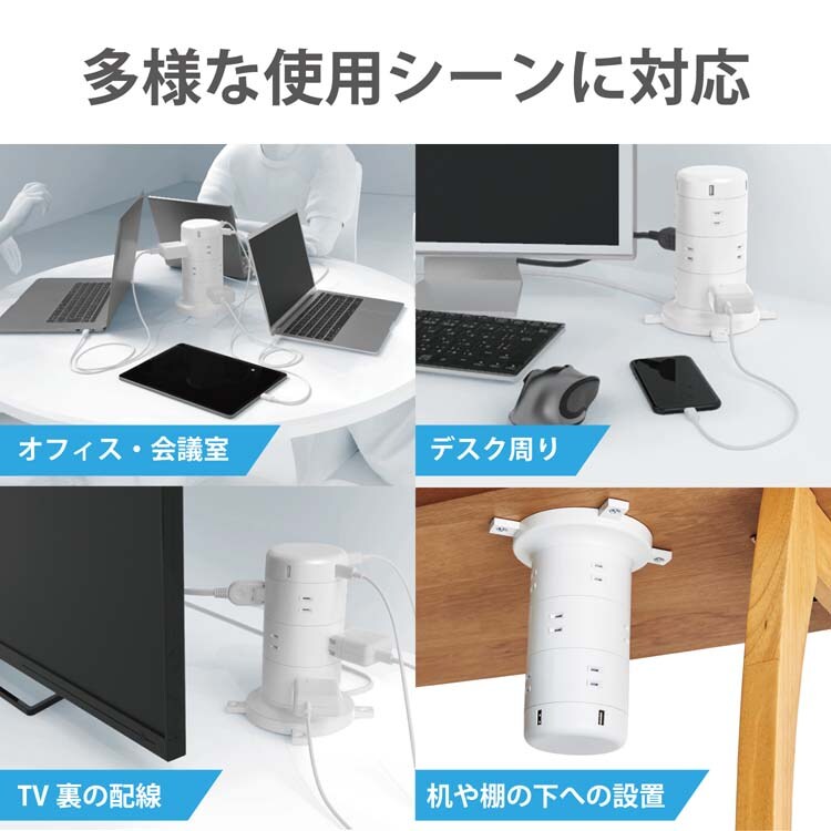 ●差込口12口とUSBポート5口が一体となったタワー形状のUSBタップです。