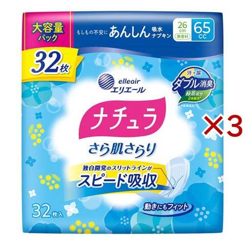 ナチュラさら肌さらりあんしん吸水ナプキン26cm65cc大容量 (32枚入×3セット)