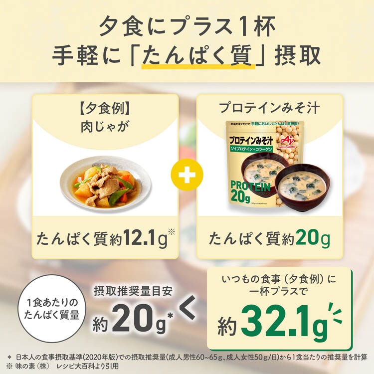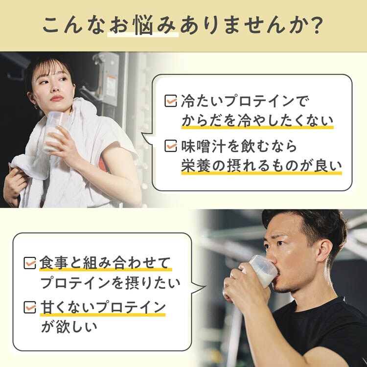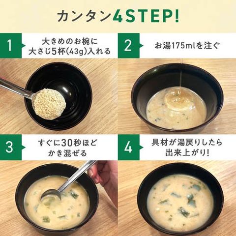 ●お湯を注ぐだけで手軽においしくたんぱく質摂取することができるみそ汁です。