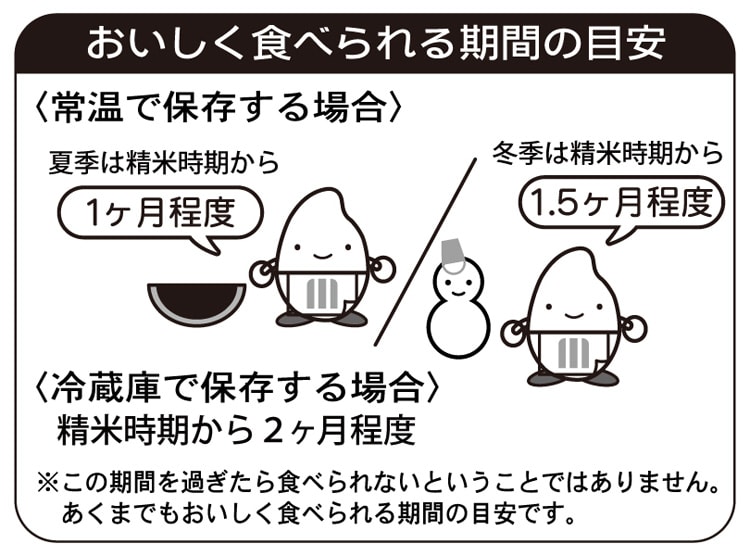 ・温湿度が高い状態で保管をすると虫が発生する場合がございます。保存容器に米を入れ替える際は、保存容器の中を清掃してください。冷蔵保管により、虫の発生を抑制できます。