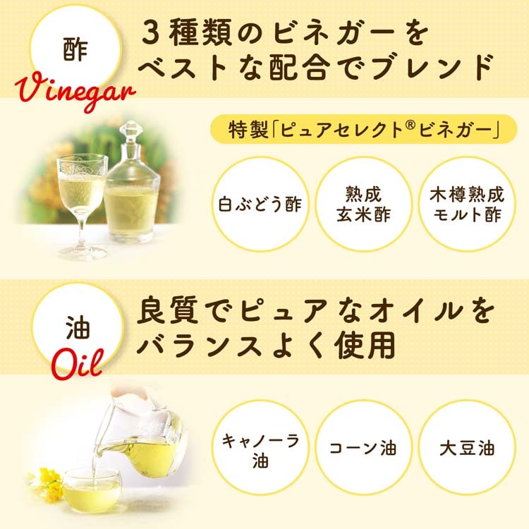 ●酢は、熱を加えたまろやかなお酢に、白ぶどう酢・玄米酢・木樽熟成モルト酢をブレンドした、特製「ピュアセレクトビネガー」を使用しています。