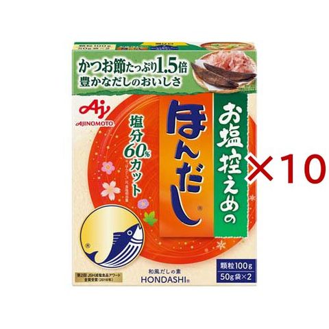 ●かつお節職人が燻し分けた3種のかつお節をふんだんに使い、更に「やさしお」のおいしく減塩する技術を使うことで、「ほんだし」のおいしさそのままに60%減塩。