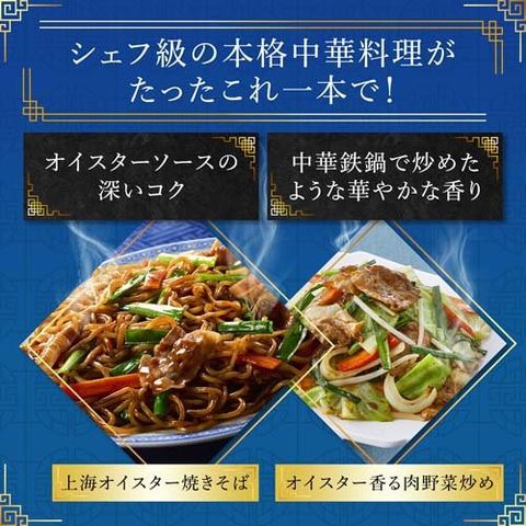 ●シェフが中華鉄鍋で炒めた時の香りを再現しているので、焼きそばや肉野菜炒めなど中華炒めメニューが、これだけで家庭では作れない本格的なおいしさに仕上がります。