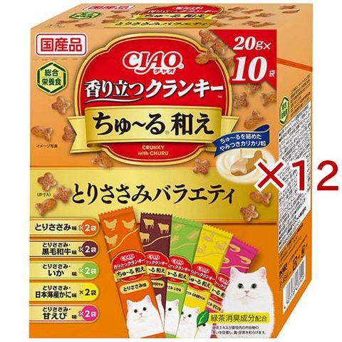 CIAO香り立つクランキーちゅ~る和え(BOX)とりささみバラエティ (10袋入×12セット(1袋20g))